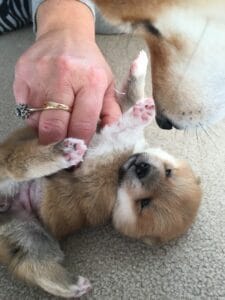 Our pups don’t go to new homes before 9 weeks of age, we try to keep them as long as possible (closer to 10 weeks) as the moms teach them so much between 6 and 10 weeks, we also do not do the first set of shots until the puppies are 9 weeks of age.